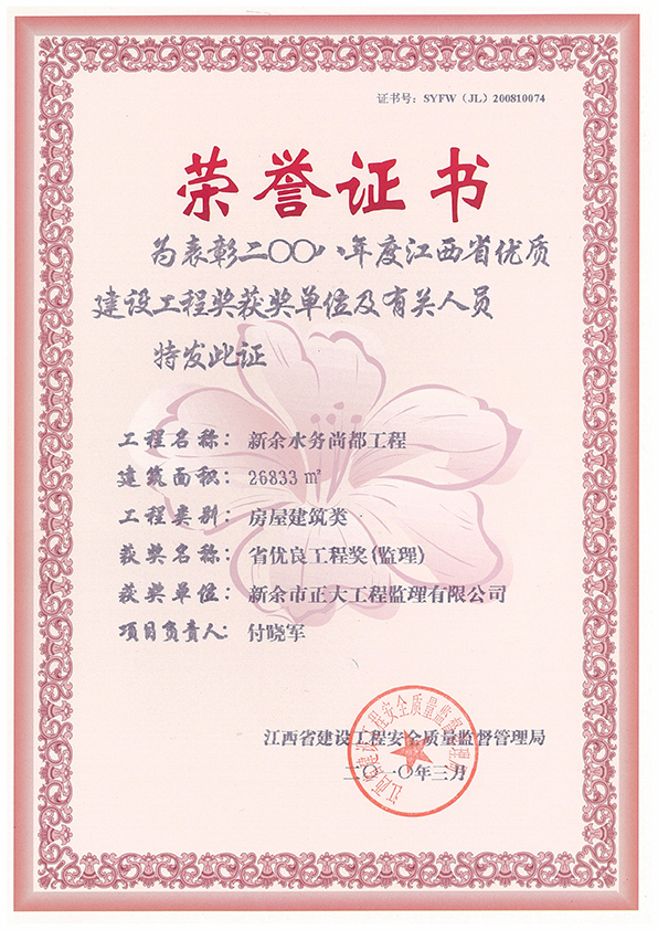 新余市正大工程監理有限公司依托新余市建筑設計院,于1995年11月成立,是新余市開展監理工作最早的監理單位,本公司具有建設部核發的房屋建筑工程甲級監理資質、市政公用工程乙級監理資質、國家人防辦核發的人防工程監理乙級資質。我公司始終堅持“客戶至上、質量第一、信守合同”的經營理念;追求“為社會創造價值、為業主創造效益、為自身謀求發展”的經營宗旨;遵循“守法、誠信、公正、科學、優質、高效”的工作原則,以雄厚的技術力量、完善的管理制度、豐富的監理經驗、良好的企業信譽迅速成為我市監理行業的一支新銳力量!